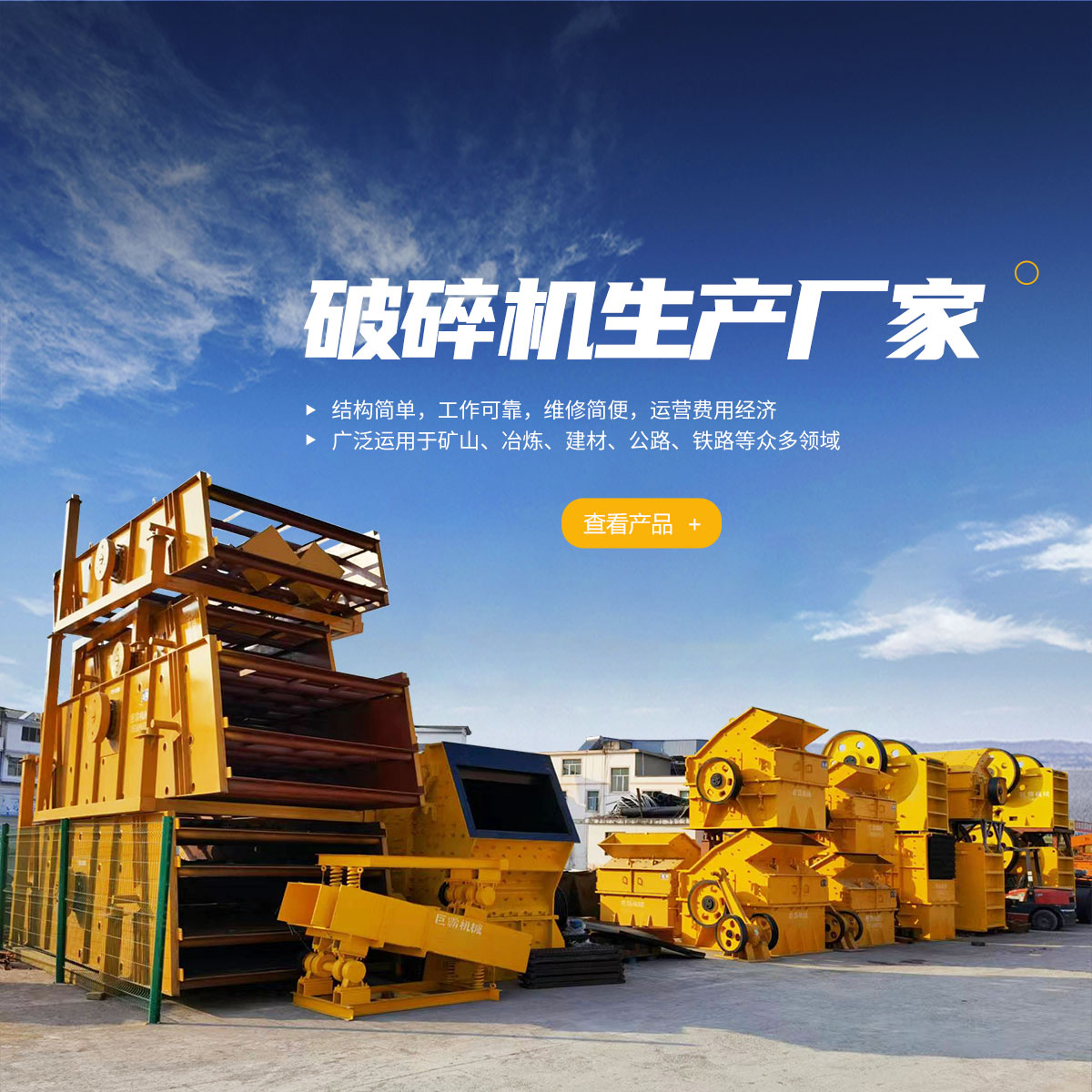 主要產(chǎn)品有:移動(dòng)式破碎站、礦用制砂機(jī)、破碎機(jī)、礦砂設(shè)備、混凝土攪拌站等產(chǎn)品